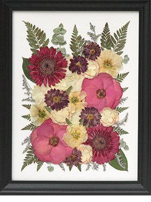 Preserve the memories of your special event or celebration with a Pressed Flower Frame. Your sentimental blooms are dried, pressed, designed and hand crafted into unique floral art and an everlasting keepsake.