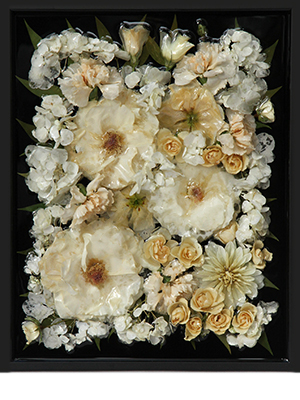 Your bouquet will be dried, pressed and creatively arranged on a black background to make all your colors pop. Depending on the variety, some will be pressed flat and others will be 3D. This gives a lovely floral sculpture look to your Frame. Your flowers are protected with Resin to ensure that the texture, form and colors are retained.